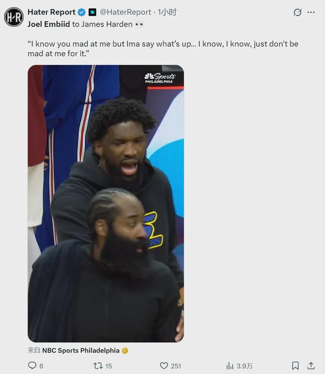 冰释前嫌!0交流0联系!恩比德拉住哈登:你别生气了